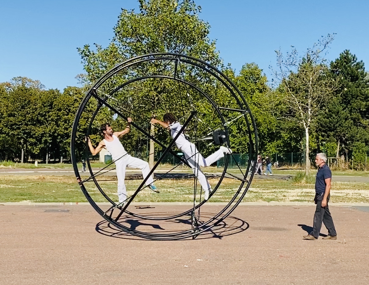 La commande est celle d’un chorégraphe pour se déplacer dans la ville avec les logiques de la danse et celles de l’urbain. L’agrès devra évoluer au sol sans moteur ni roues, c’est l’action des artistes qui l’habitent qui le mettra en mouvement. Plusieurs modes d’évolutions devront être possibles générant des trajectoires différentes : la ligne droite, le cercle... La chorégraphie urbaine donne à voir une capacité d’adaptation immédiate à une situation en perpétuel changement.